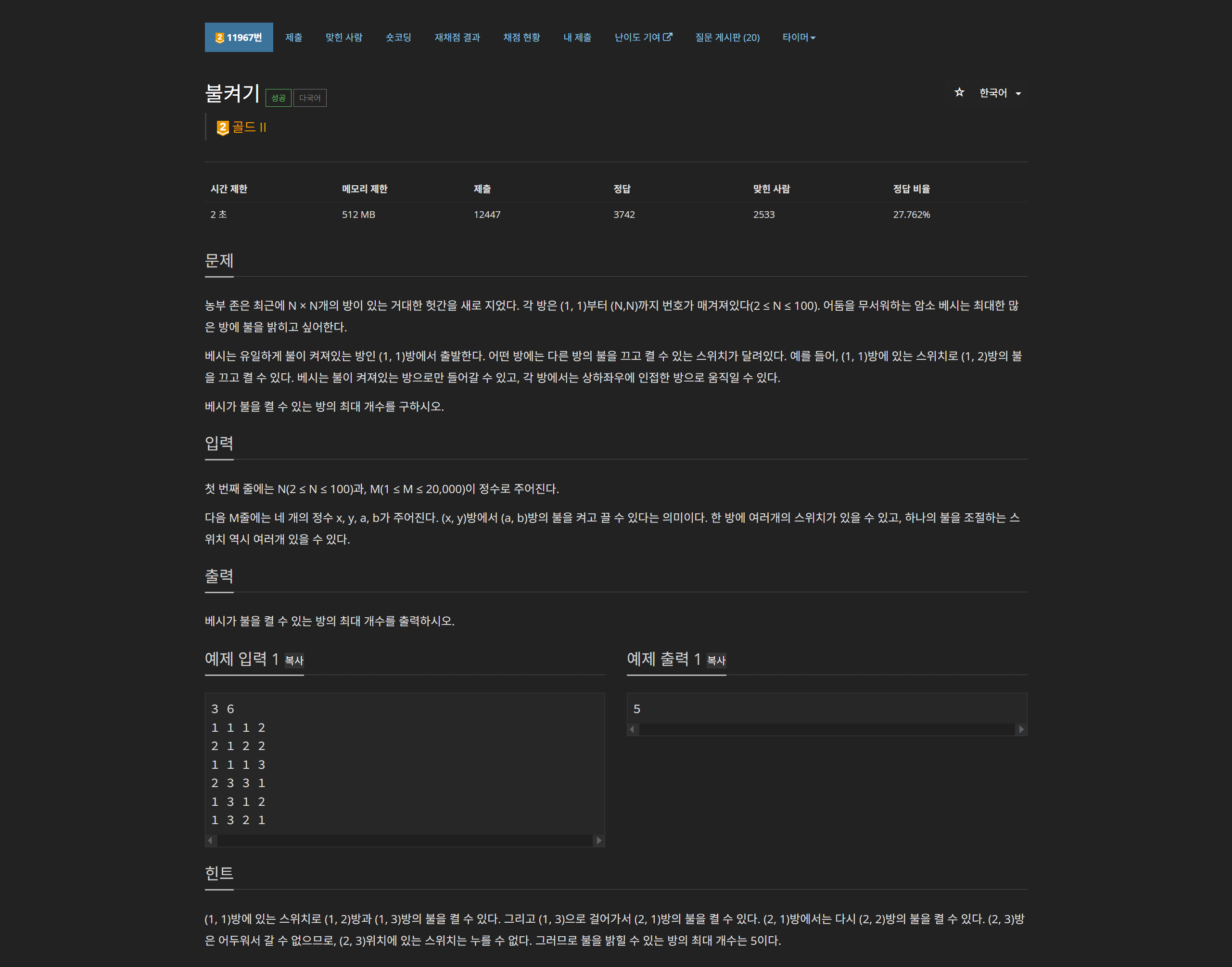 문자열들의 앞과 뒤를 잘라서, 같은 알파벳이 있으면 서로 연결시킬 수 있다.이 때, 자르는 알파벳들의 수가 최소가 되게끔 해야한다. 따라서, christma(s), (h)alloween을 통해 각각 s와 h를 지우면 연결을 할 수 있는 셈이다. 여기서 두 개의 문자열을 보고 하나하나 비교를 하게 되면, 10만개 중에 두개를 고르는, 10만 C 2 개의 연산을 해야하고, 이는 무조건적으로 TLE를 받게 된다. 문제의 포인트는 결국 '알파벳'을 기준으로 연결한다는 점이다.a부터 z까지의 알파벳이 왼쪽에서 언제 제일 빨리 나오는지, 오른쪽에서 언제 제일 빨리 나오는지를 저장한다. (left,right)각 string을 돌면서, string에서 a부터 z까지 각 알파벳이 왼쪽에서 언제 제일 빨리 나오는지, 오른..