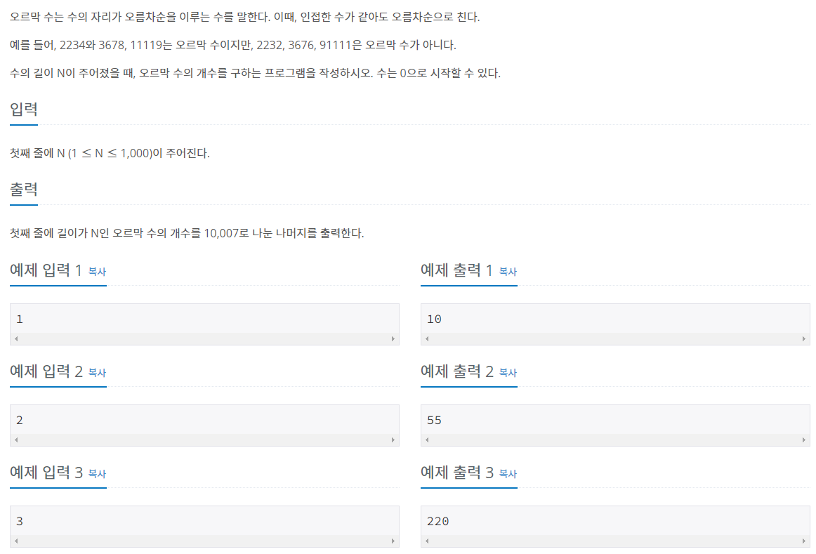 BOJ 11057: 오르막 수 (+중복조합 야매) 하... 이 문제를 보고 참아버리지 못했다. 물론 지금 컴퓨터 공부를 하고 있지만, 수학적으로 문제를 봐버리고 나니 다른 해답으로 풀기가 싫어진다. 문제부터 보자. 이 문제를 보고 dynamic programming으로 풀까라는 생각이 1초정도 났지만, 바로 확률과 통계에서 나오는 중복조합 H가 생각났다. 딱 중복 가능한, 순서 따져야 하는.... 중복조합 아닌가! 이걸로 풀었다. import math n=int(input()) print((math.factorial(9+n)//(math.factorial(9)*math.factorial(n)))%10007) 하지만, 코더의 본분은 코딩이거늘... dp로 마지막 자리로 index 잡고, 하나씩 늘려주면 된다! 하하 수학 1승.! Computer Science/Algorithm 2022.01.04
